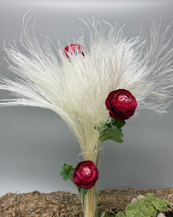 Stone grass, comunemente nota come felce Tiki o asparagus virgatus, è una pianta da fiore della famiglia delle asparagacee, non una vera e propria felce. È attraente per i suoi steli sottili e cespugliosi e per le sue foglie aghiformi ed è ampiamente utilizzata nell’industria floreale come fogliame decorativo. La nostra stone grass preservata è disponibile in colore bianco puro sbiancato e rosa chiaro, in combinazione con altri fiori preservati come la rosa, l’ortensia e l’amaranto, in installazioni appese o in centrotavola, rende l’esposizione floreale incantevole e sorprendente.